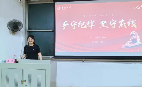 2024年7月2日,基礎(chǔ)醫(yī)學(xué)院在湘雅新校區(qū)福慶樓T105教室開展“一院一宣講”黨紀(jì)學(xué)習(xí)教育,校紀(jì)委第二紀(jì)檢監(jiān)察室主任楊帆作題為《嚴(yán)守紀(jì)律,堅(jiān)守底線》的專題宣講,院領(lǐng)導(dǎo)王慷慨、熊煒、劉俊文、黃河、馮虹、王寬松、周勇和全體教職工參會(huì)學(xué)習(xí)。會(huì)議由院黨委副書記馮虹主持。
