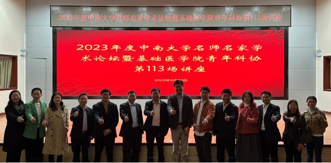 2023年4月24日上午10點,學(xué)院在湘雅醫(yī)學(xué)院新校區(qū)圖書館一樓學(xué)術(shù)報告廳舉辦了“中南大學(xué)名師名家學(xué)術(shù)論壇暨基礎(chǔ)醫(yī)學(xué)院青年科協(xié)第113場學(xué)術(shù)講座”,三位國家杰出青年科學(xué)基金獲得者做客現(xiàn)場,并帶來了精彩的專題學(xué)術(shù)講座,三位專家分別是中山大學(xué)教授、教育部“CJ學(xué)者”特聘教授康鐵邦,昆明醫(yī)科大學(xué)研究員、科技部重點研發(fā)計劃項目首席科學(xué)家陳策實,清華大學(xué)教授、醫(yī)學(xué)院副院長兼黨委副書記程功。本次論壇由殷剛副院長主持,三位專家傳道授業(yè),深入淺出,在場師生求知若渴,積極探討,講座現(xiàn)場座無虛席,氣氛熱烈。