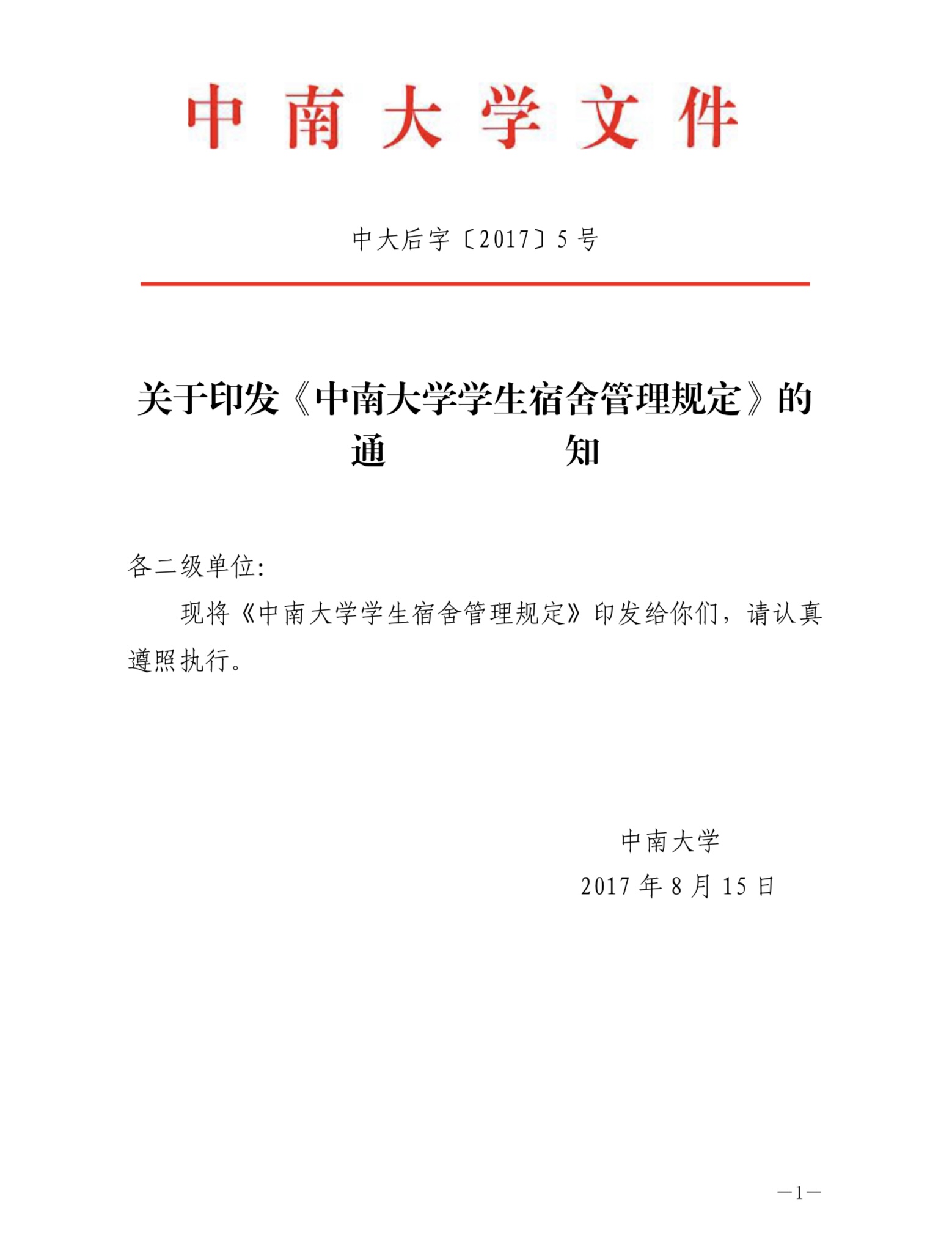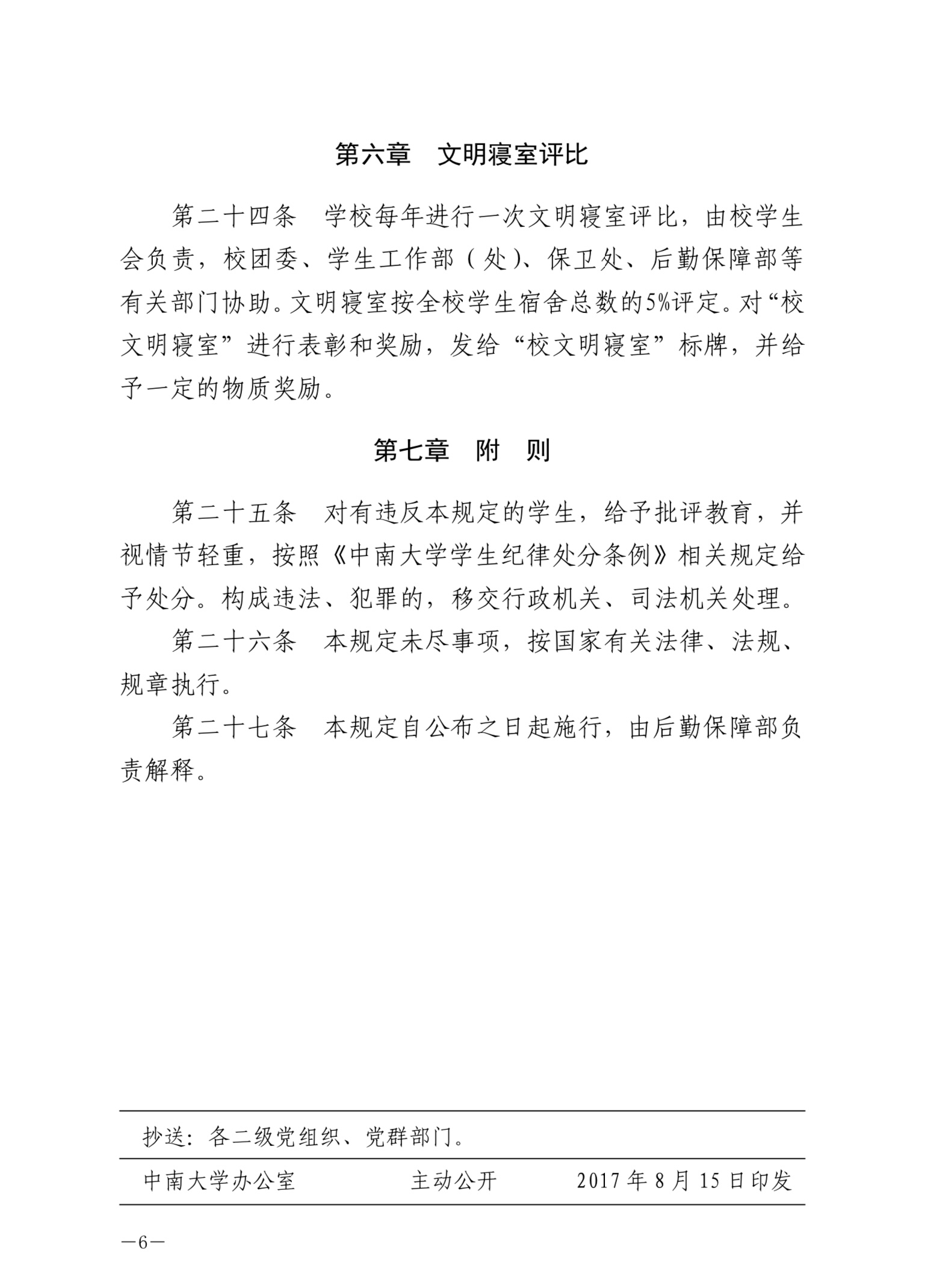 中南大學(xué)學(xué)生宿舍管理規(guī)定