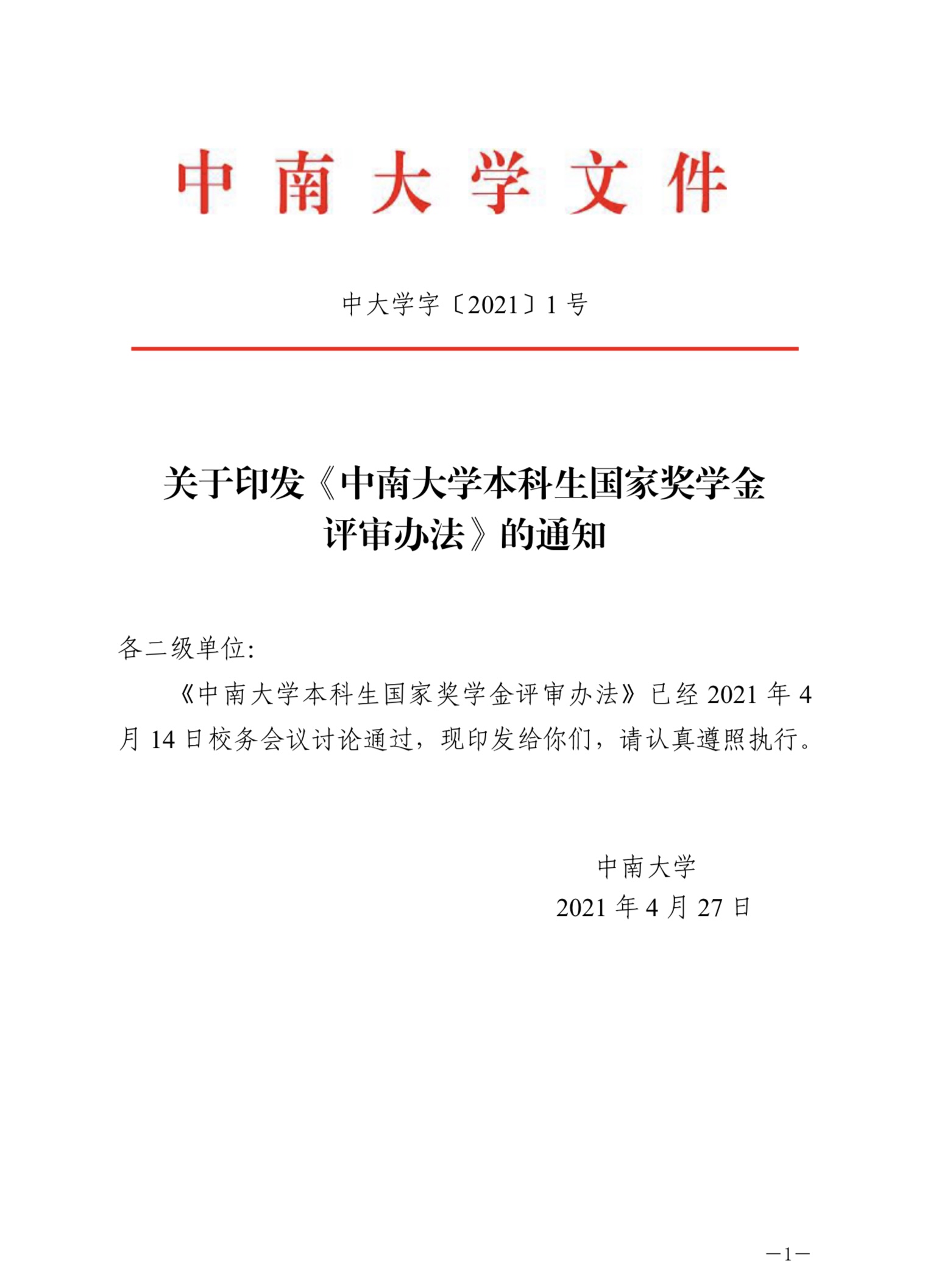 中南大學(xué)本科生國家助學(xué)金評審辦法