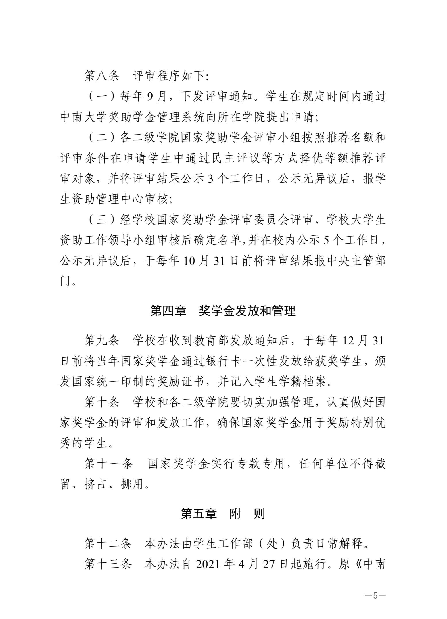 中南大學(xué)本科生國家獎學(xué)金評審辦法