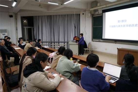 盧光琇教授深入淺出地講解了與干細胞相關的基礎知識,比如按照分化潛能或來源給干細胞分類、干細胞可以用于什么種類的研究、如何應用標記物鑒定干細胞等,同時在教學的過程中,結合自身的科研經歷,與同學們互動,鼓勵同學們有民族自豪感,努力學習,勇于創(chuàng)新,為國爭光。一個半小時的課程,盧光琇教授不覺疲憊,全程站立著。同學們用長時間的、熱烈的掌聲,感謝盧老師帶來的精彩的授課。課后,同學們紛紛表示,這不僅是一堂科學知識享受課,而且是一堂很有教育意義的思政課。