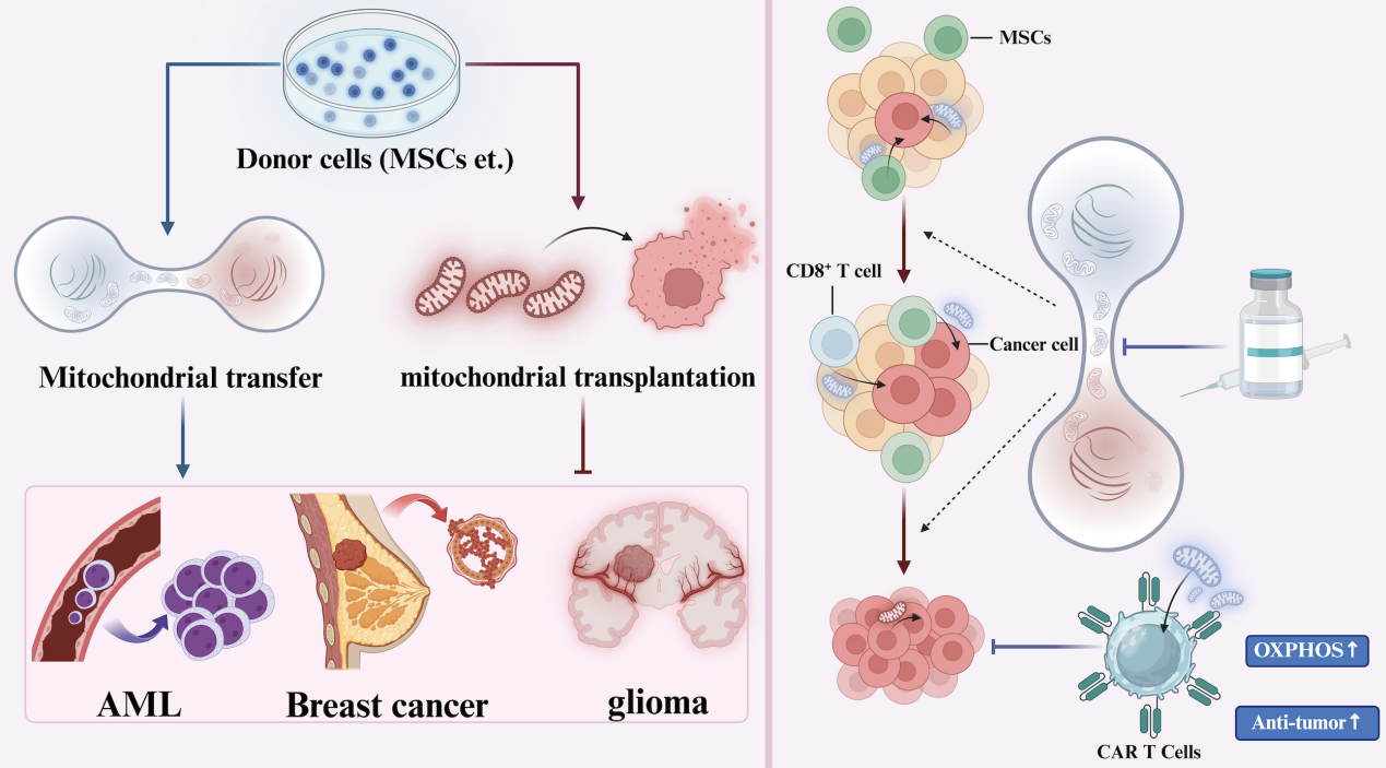 這種線粒體的“掠奪”行為為癌癥治療提供了新的角度:若能夠干擾該過程,就可能剝奪癌細(xì)胞的“能量源”,從而抑制其生長(zhǎng)和擴(kuò)散。此外,這種策略直接削弱了癌細(xì)胞的生理機(jī)能,因而可能增強(qiáng)癌癥治療的效果。