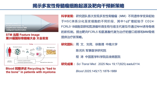 2026年1月11日,第六屆中國血液學科發(fā)展大會揭曉了“2025年度中國血液學十大研究進展”,中南大學湘雅基礎醫(yī)學院腫瘤研究所周文教授團隊成果“揭示多發(fā)性骨髓瘤細胞起源及靶向干預新策略”入選。