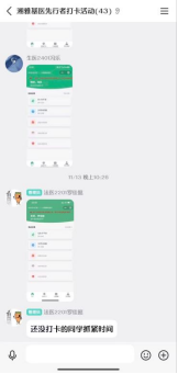 在歷時一個多月的活動中,湘雅基礎(chǔ)醫(yī)學(xué)院學(xué)生積極參與,圍繞“科普答題”“慢跑運動”兩項基本任務(wù)、“感悟紅色經(jīng)典”“傳統(tǒng)尋美之旅”“體會非遺傳承”三項特色活動,在第四屆“先行者——心理健康行”線上打卡小程序心賞校園行上完成打卡。為保障此次活動有序進(jìn)行,學(xué)院通過在QQ群設(shè)立小管家和負(fù)責(zé)人的形式督促參賽者完成打卡,有效提升打卡完成率與活動質(zhì)量。