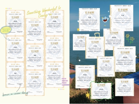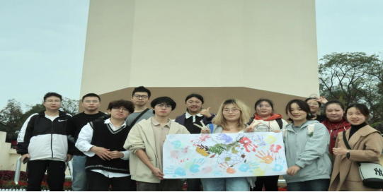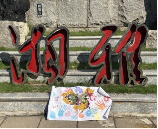 同學(xué)們沿途拾取秋葉,于山頂共同拼貼“山河錦繡”主題畫作,并按下手印,表達(dá)對祖國的熱愛與青春誓言。活動吸引眾多游客駐足參與,現(xiàn)場氛圍熱烈莊重,充分展現(xiàn)了新時代青年的責(zé)任與擔(dān)當(dāng)。