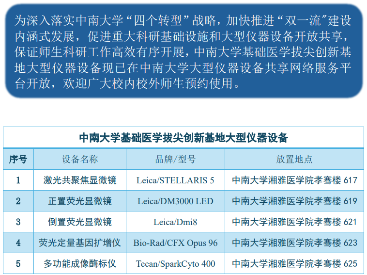 中南大學基礎醫(yī)學拔尖創(chuàng)新基地大儀服務平臺開放公告