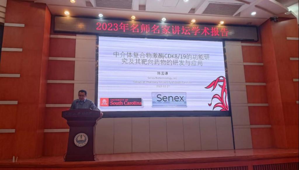 12月27日下午,我院生殖與干細(xì)胞工程研究所邀請了美國南卡羅來納大學(xué)藥學(xué)院助理教授、Senex生物技術(shù)公司研發(fā)總監(jiān)陳孟謙教授來院做題為“中介體復(fù)合物激酶 CDK8/19 的功能研究及其靶向藥物的研發(fā)與應(yīng)用”的學(xué)術(shù)報告。學(xué)院黨委王慷慨書記、黃河副院長、生干所范立青研究員出席,院內(nèi)外100余名師生代表參加活動。會議由中生干所副所長孫懿主持。